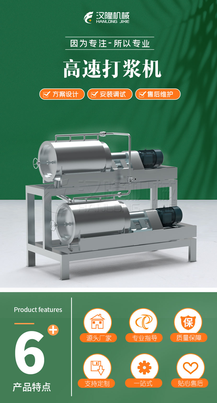 高速打漿(jiāng)機是(shì)引進國外先進技術研製(zhì)而成,主要用於大型果汁和果醬廠經過破碎或經過軟化後(hòu)的漿果或仁果的漿渣分離。該設備結構合理、效率(lǜ)高、出漿率高(gāo)、分離速度快、生(shēng)產能(néng)力(lì)大、穩(wěn)定性好等優點。高速打漿機適用於經過破碎後番茄、獼猴桃(táo)、草莓、蘋果、梨以及經過預煮軟化的山楂、棗等水果的打漿分離。該機既可組合在生產線上又可單機生產;與物料接觸的(de)部(bù)分均為優良不鏽鋼製作,符合食品(pǐn)衛生。