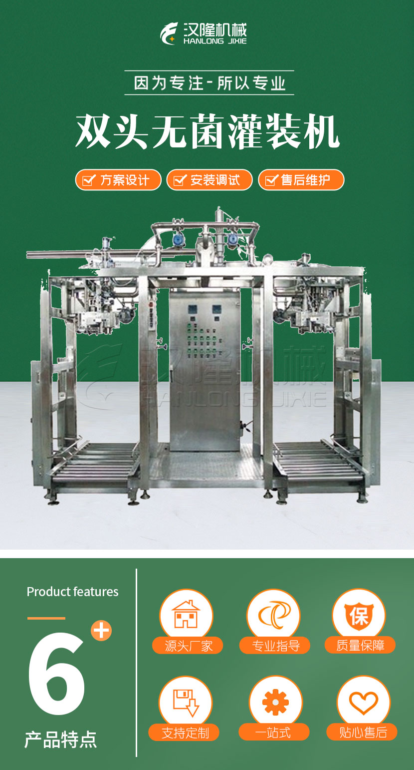 無菌灌裝機廣泛應用於果汁,果漿和(hé)果(guǒ)醬等流體食品的無(wú)菌(jun1)包裝。室溫下,產(chǎn)品可保存一年以上,可省去低溫冷藏運輸的費用及風險。