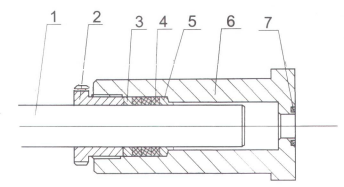 變速部分各軸均采用標(biāo)準滾動軸承和特種合(hé)金材(cái)料作滑動軸承,變速箱潤滑(huá)采用大齒(chǐ)輪飛濺,通過導油孔連續潤滑各檔軸承,柱塞高(gāo)壓(yā)密封部件—由於柱塞的往(wǎng)複運動在高壓泵中產生很大的壓強,因此,柱塞往複運(yùn)動處的高壓密封是獲得(dé)很大壓(yā)強的先決條件(jiàn),它由柱塞密封套、緊定(dìng)螺釘、柱(zhù)塞定位套、墊(diàn)環、密封圈、壓環等組成(圖5)。本係列柱(zhù)塞密封圈有V型和(hé)方型兩種。