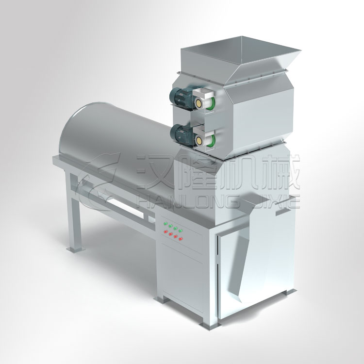石榴從進料鬥進入上(shàng)壓碎裝置,上壓碎裝置將石榴(liú)壓開,下壓碎裝置再次將石榴擠壓(yā),經(jīng)過兩級擠壓的石榴已基本皮(pí)籽分離,並(bìng)落入分離裝置,石榴籽(zǐ)從(cóng)篩(shāi)孔落下,皮從尾部排出,籽(zǐ)及汁用另配的螺杆泵送(sòng)至下道工序。 一、概述