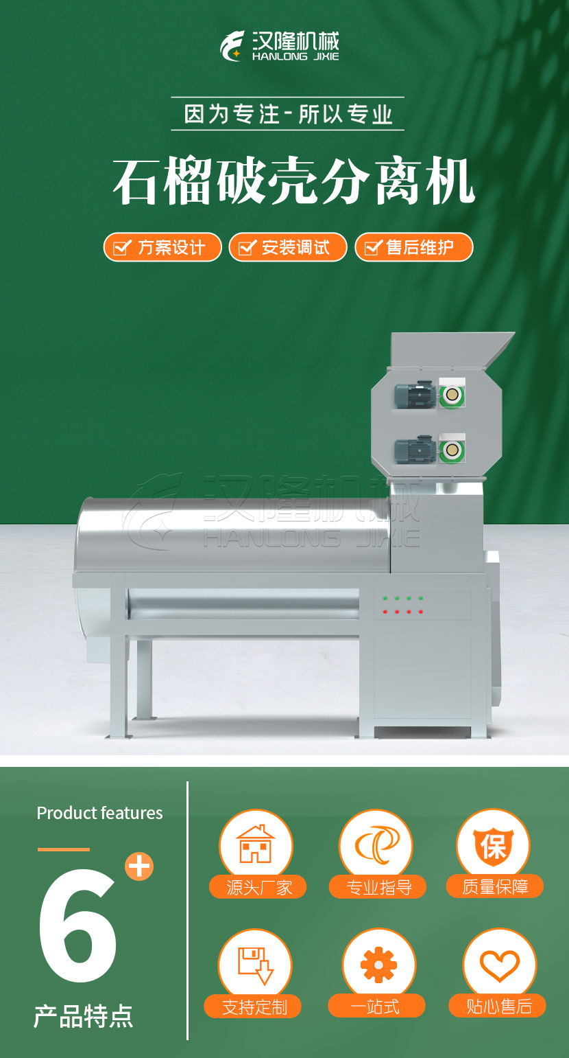 石(shí)榴破殼分離機(jī)為我公司引進國外先進技術設計製造的石榴破殼(ké)分離設備。具有結構(gòu)新穎緊奏、節能(néng)高效、生產效率高特點。該機可用於石榴、西番蓮等硬果的破殼分離。