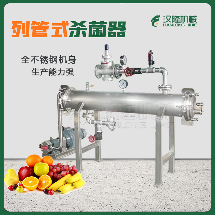 列管式(shì)殺菌(jun1)器(qì) 該設備是蒸汽在物料管外加熱提高(gāo)漿液的溫度,以達到桑菌的目的。適用於對流體和(hé)半流體物料進行巴氏(shì)殺菌。